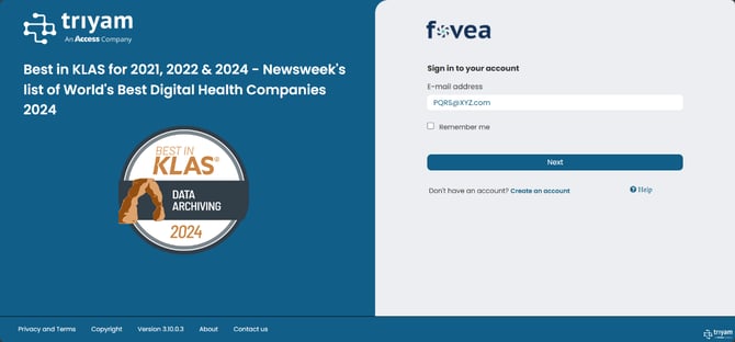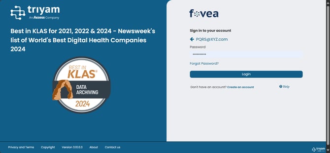 Access Unify® | Health can be accessed from the cloud hosted by Triyam or can be on-premises. For the cloud version, access the URL https://livefovea.com/. For the on-premises version URL, please contact your in-house Access Unify® | Health administrator.